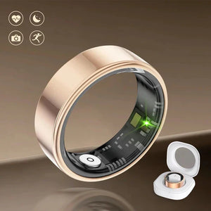 ✅Overview ✔Real-time monitoring (front packaging)– Connects to a mobile app to instantly track and view heart rate data, helping you stay informed about your cardiovascular health. ✔Discreet smart design– Looks like a classic metallic ring, but with embedded sensors on the inner band for continuous tracking. ✔Dual-color options (image)– Available in elegant gold and sleek black finishes to match your style.